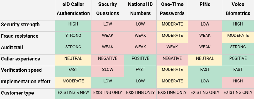 Here’s a top-level comparison of eID caller authentication against the rest: