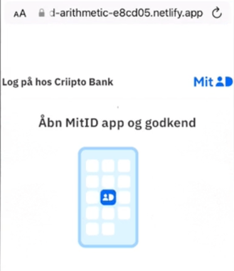In the case of the Danish MitID, the screen now tells the user to open the MitID app on their phone to approve the login. The victim finds the MitID app and opens it.